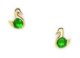 14k Yellow Gold, 14k Yellow Gold May Birthstone Emerald 3x3mm Cubic Zirconia Duck Shaped Screwback Earrings - Measures 6x5mm - in 14k Yellow Gold - JewelryWeb Style: MDE184229Y - FREE gift-ready jewelry box